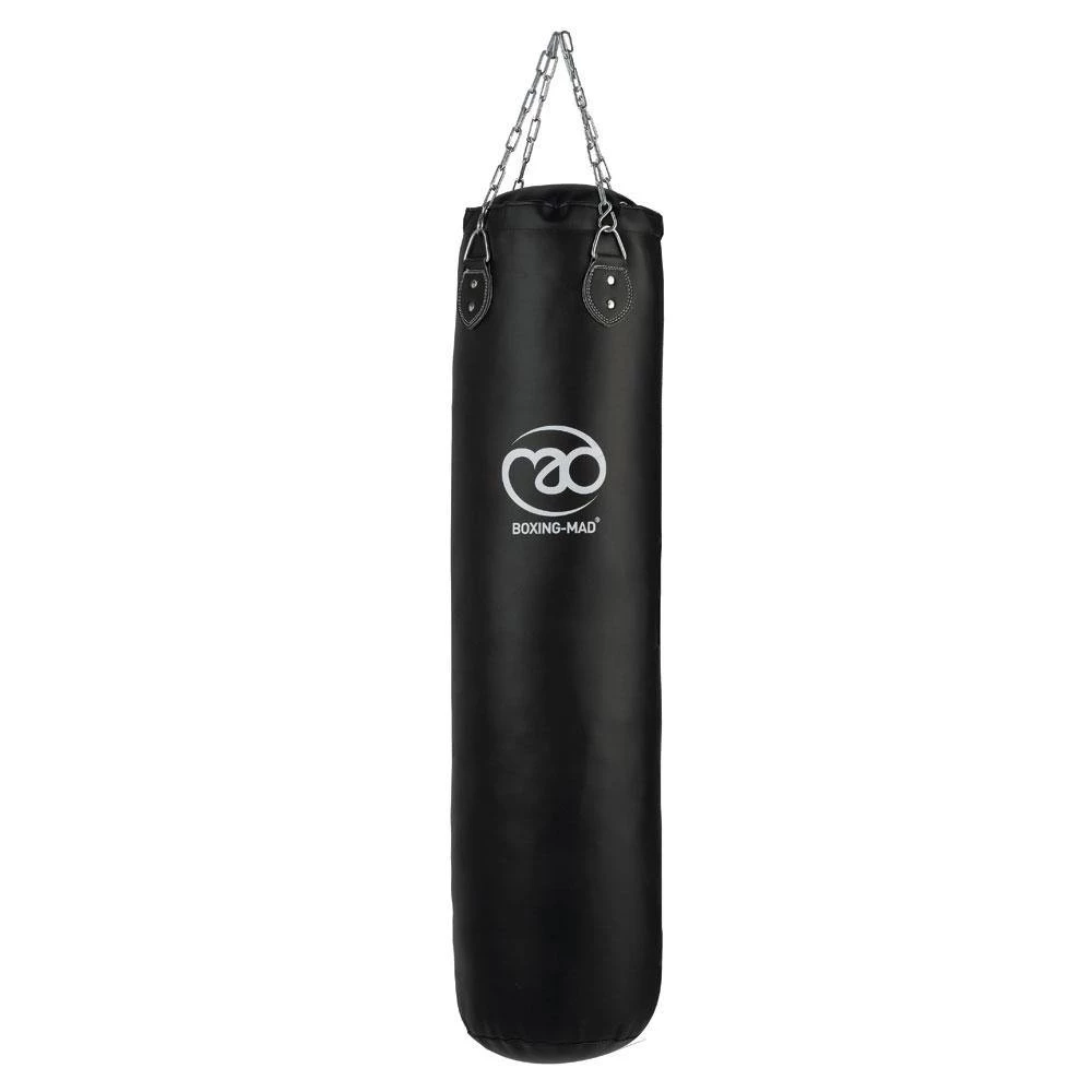 Boxing-Mad’s ultimate punch bag is made from cowhide split leather. Perfect for boxing at home or in a studio. Our Club Pro Leather Punch Bag is machine filled with a custom blend for optimum weight and feel. Zip closure with four heavy gauge welded “D” rings.Â