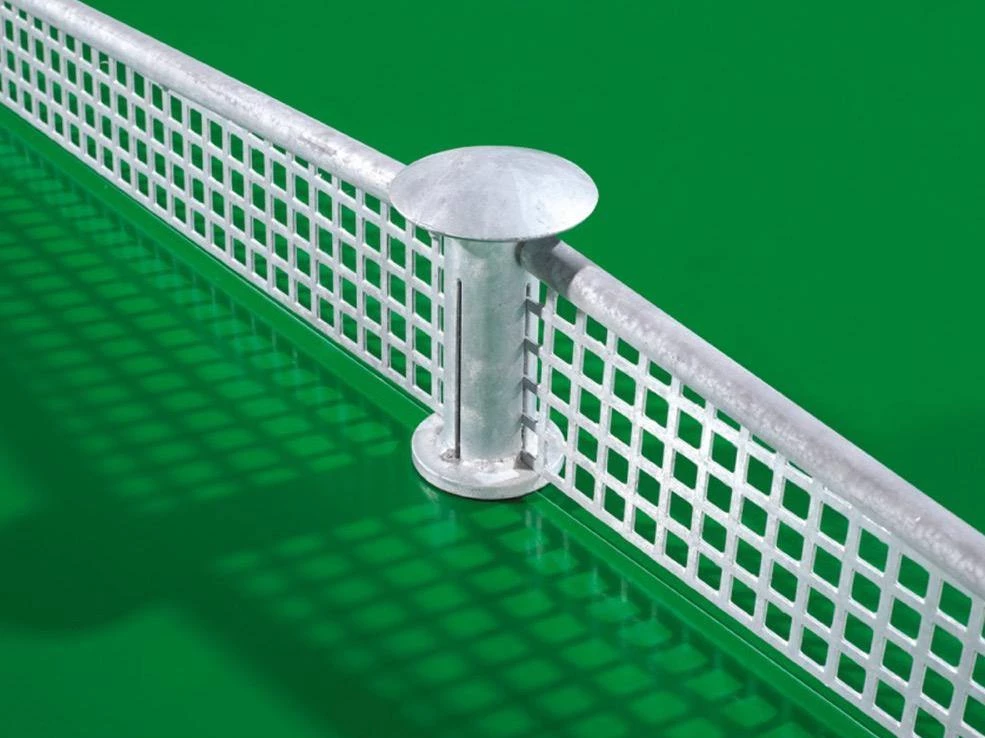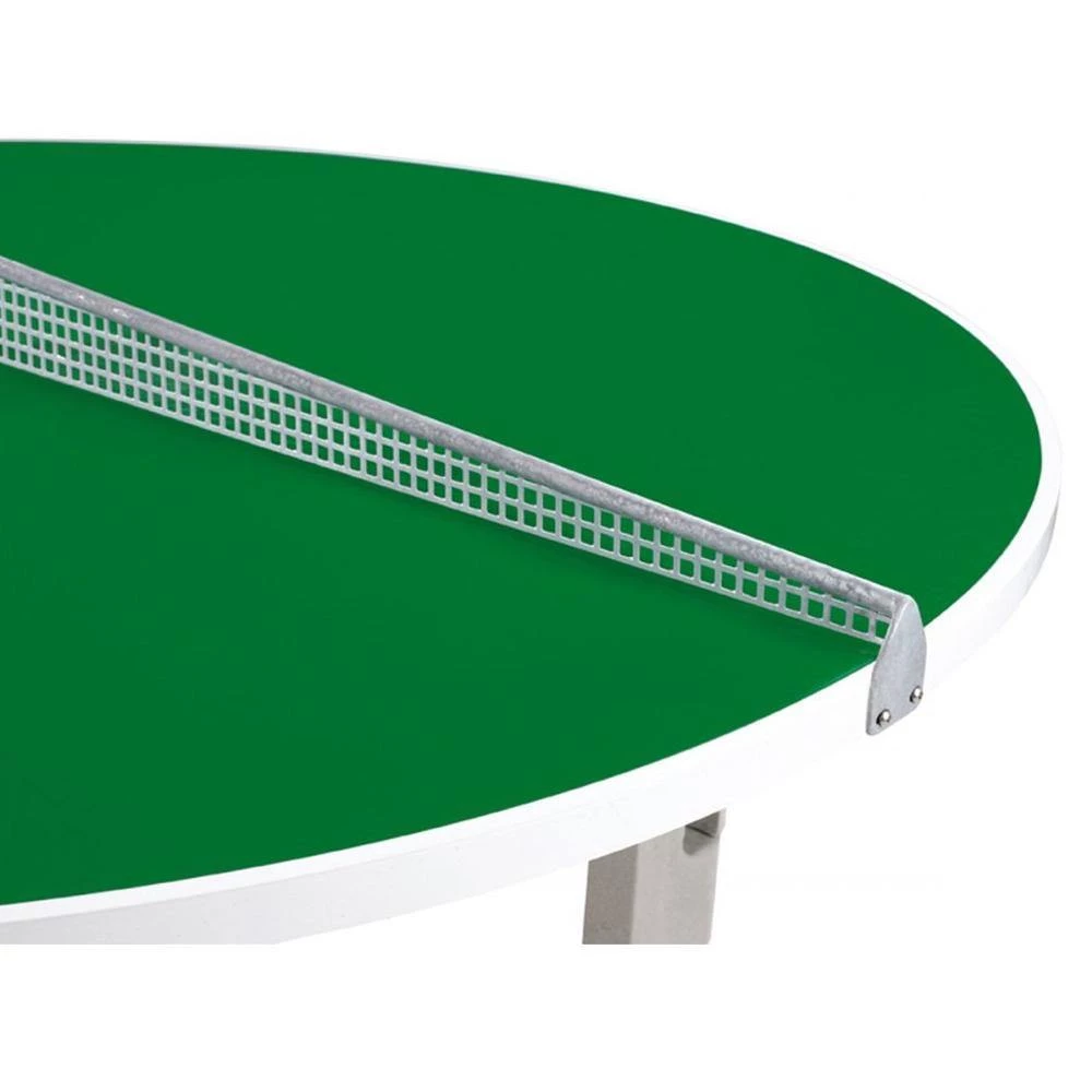 An interesting new style of playing table tennis table. This table allows 2 games of singles or doubles to take place at the same time. Unique round shape with a 25mm reinforced playing top together with a net and post set which covers the centre of the table in 2 directions.