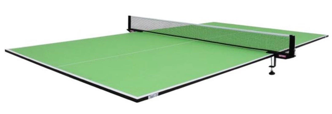 - Lays on top of a table, turning a dining table or desk into a table tennis table.