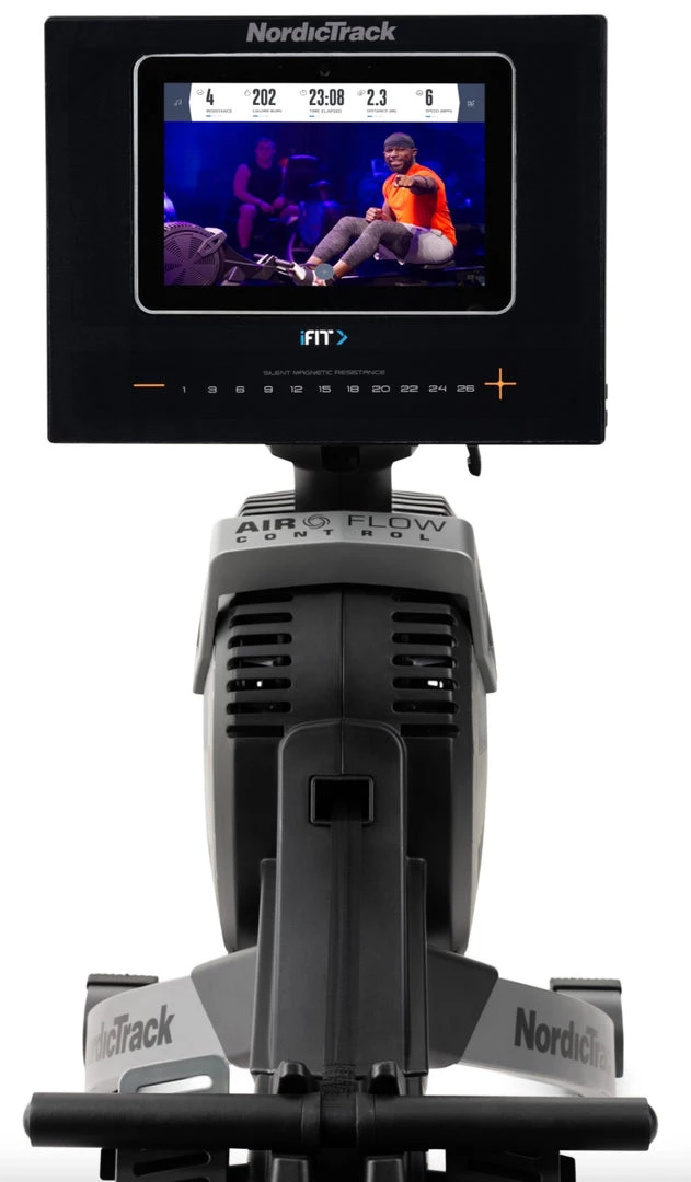 The Nordic Track RW600 Rowing Machine has taken a new approach to an old school workout. Rowing is an efficient exercise which works the upper and lower body, focuses on core strength and keeps your heart rate up. Engineered for incredibly smooth performance, with an effective inertia enhanced flywheel which delivers a more natural motion. The fan blades on this rower generate air resistance as you workout. The faster you row, the more resistance you generate. Also, along with the adjustable 1-10 Air Resistance this rower comes with 26 digital levels of silent magnetic resistance which adjusts at the touch of a button.