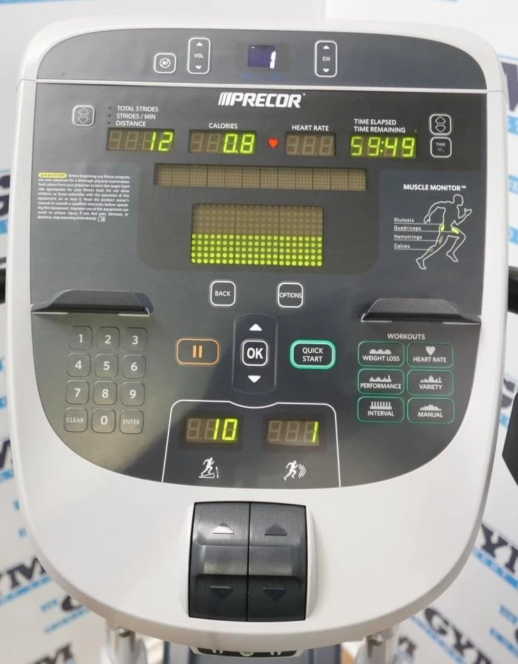 The Advanced LED P30 console provides the following clear and easy to use read-outs: Resistance level, CrossRamp Angle, Distance, Strides/min, Total strides, Calories, Heart rate, Time remaining, Time elapsed, Time in zone, Segment time, Remaining, Average speed, Calories/min, Calories/hour, Watts, METS, Target HR, Average HR, % Complete, Workout profile, Workout Summary.