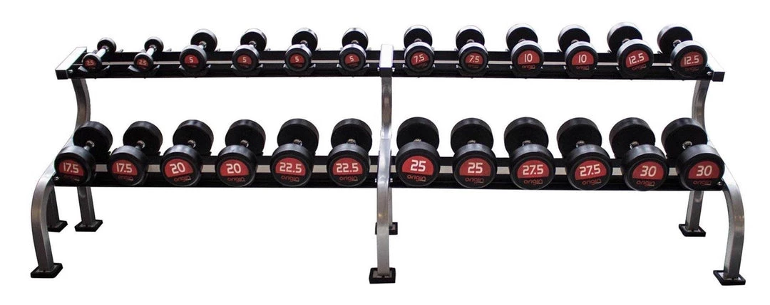 The Origin 12 Pair 2 Tier Dumbbell Rack is perfect for any circular dumbbell range. Comfortably holding up to 24 dumbbells, which are all easily accessible. Sturdy and durable the Origin 12 Pair 2 Tier Dumbbell Rack is here to last.