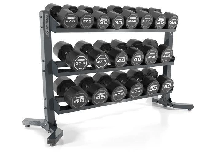 RBDB2750R: 27.5kg-50kg Nucleus SBX Dumbbell Set and RACKDB15 – 2.5kg incs (10 pairs – 20 total).