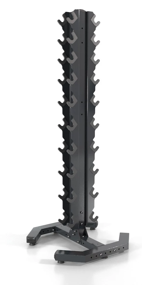 The Vertical Dumbbell Rack conveniently organizes your Escape dumbbells and delivers a space-saving alternative to a horizontal rack. Providing easy accessibility, its modern, intelligent design does a lot more than simply display the range of weights. Its heavy-duty, quality craftsmanship will provide long-term durability for years to come.