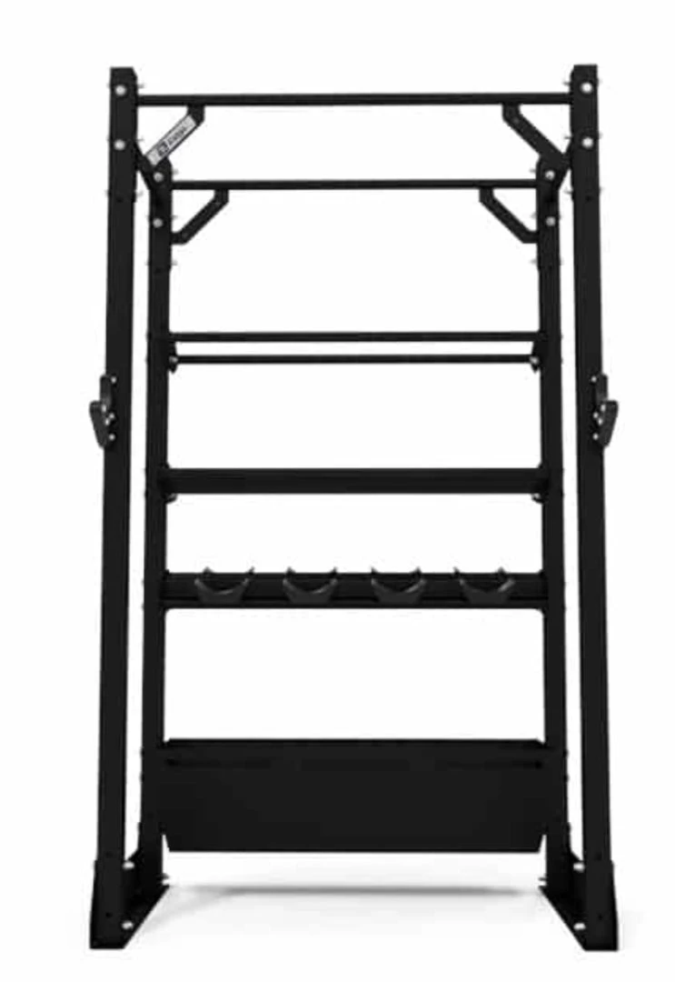 The Exigo E60 Fixed Half Rack SG can hold up to 4 internal 110 storage shelves of your choice to store various accessories such as kettlebells, dumbbells, gym balls and more inside of the rack. This rack is made with 60x60x3mm steel uprights and is a great space saving solution but must be fixed to the floor. Perfect for personal trainers, home/garage gyms, but also suitable for commercial facilities. A pair of E60 J-Hooks are included.Â