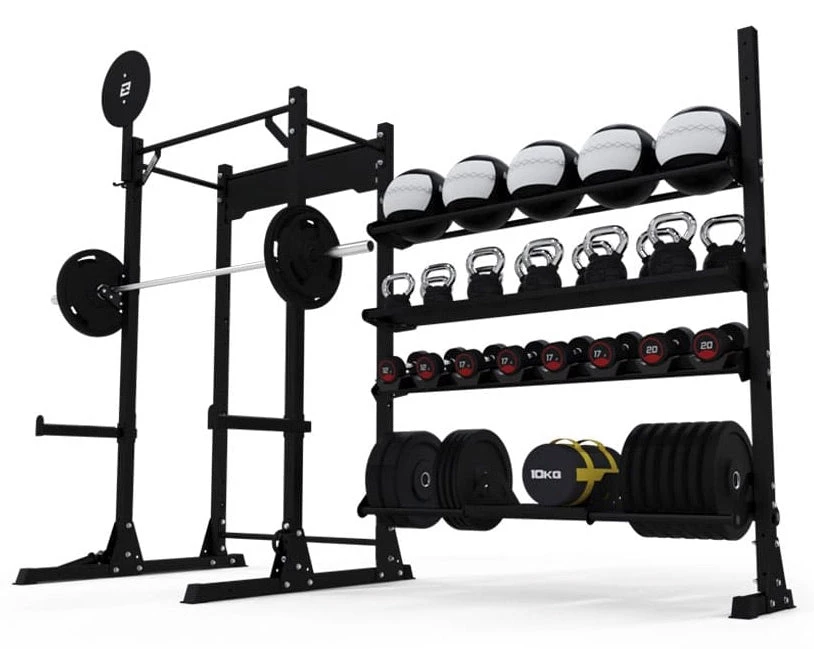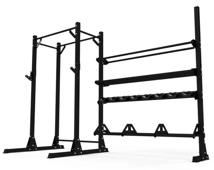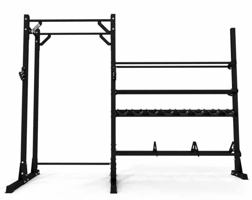 The Exigo E60 Half Rack ST180 is made with 60x60x3mm steel uprights and offers the same features as the E50 Half Rack but provides an easily accessible 180 (1.8m) storage bay capable of holding up to 4 storage trays of your choice to conveniently store a variety of accessories. This rack is ideal for a home/garage gym, personal training, or even commercial facilities. A pair of E60 J-Hooks are included.