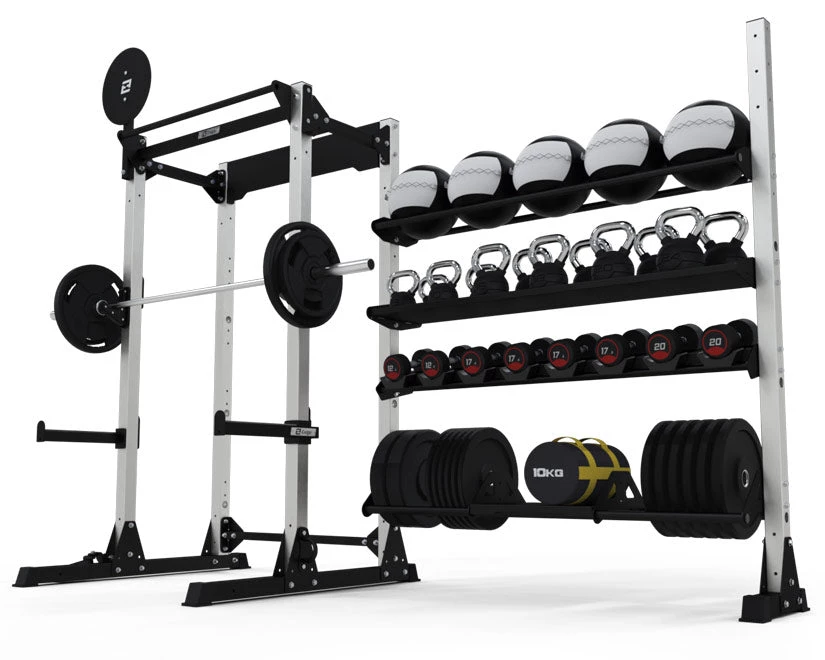 The Exigo E70 Half Rack ST180 offers the same features as the E70 Half Rack but provides an easily accessible 180 (1.8m) storage bay capable of holding up to 4 storage trays of your choice to conveniently store various accessories such as kettlebells/dumbbells, gym balls and much more. This rack is fully commercial and made with heavy duty 70x70x3mm thick steel uprights. An ideal solution for personal trainers, commercial facilities, or even home/garage gyms. E70 J-Hooks are included as standard.Â