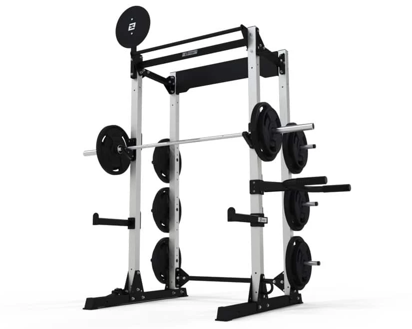 The Exigo E70 Half Rack is like the E70 Fixed Half Rack but does not need fixing to the floor. This free-standing rack is fully commercial, made with heavy duty 70x70x3mm thick steel uprights and is ideal for squatting, benching, pull ups, and more with additional attachments. The rear uprights can hold up to 6 weight horns for storing weight plates. Perfect for commercial gyms, personal trainers, or home/garage gyms. A pair of E70 J-Hooks are included.