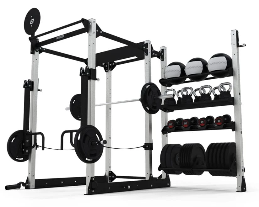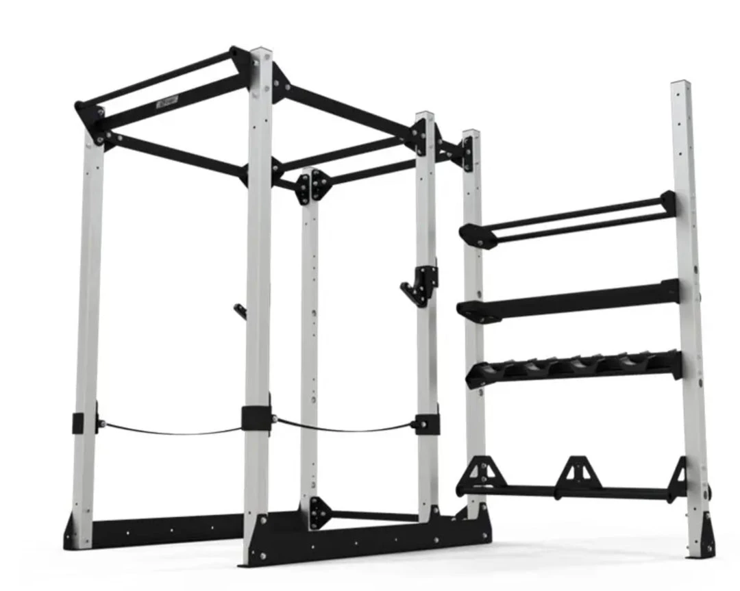 The Exigo E70 Power Rack ST110 offers the same features as the E70 Power Rack but provides a compact 110 (1.1m) storage bay capable of holding up to 4 storage trays of your choice to conveniently store various accessories such as kettlebells/dumbbells, gym balls and much more. This rack is fully commercial, made with heavy duty 70x70x3mm thick steel uprights and is a great option to maximise space. An ideal solution for personal trainers, commercial facilities, or even a serious home gym. A set of Safety Straps and E70 J-Hooks are included.Â