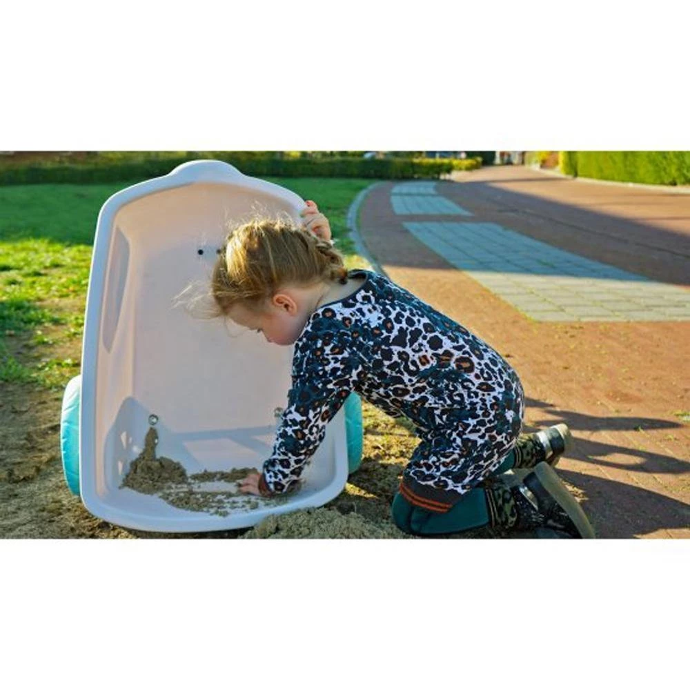 We have also focussed on making it user friendly. De EXIT Foxy Club trailer is lightweight and easy to attach to the pedal go-kart using the included attachment pin. So even the youngest ones can operate the trailer. The functional tipping position allows you to dispose of the contents of the trailer, without having to detach the trailer from the pedal go-kart. This is not just extremely handy, but tipping things off the trailer is also loads of fun.