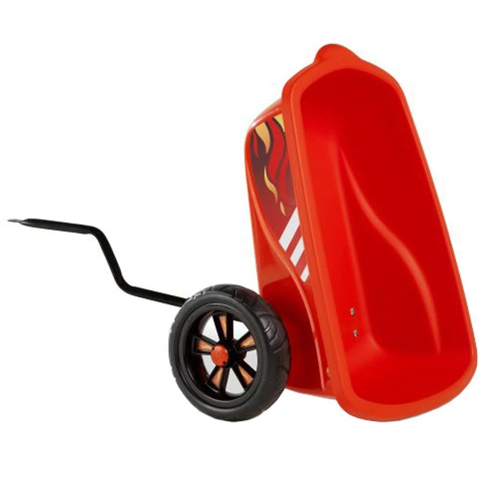 The EXIT Foxy Fire pedal go-kart with trailer is a red pedal go-kart with matching trailer for children between the ages of 2-5 year.