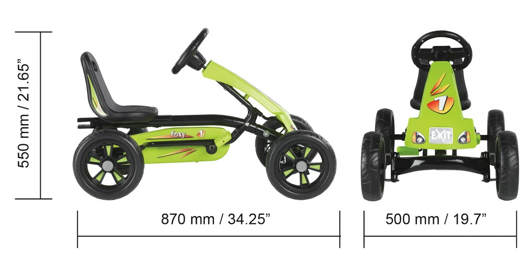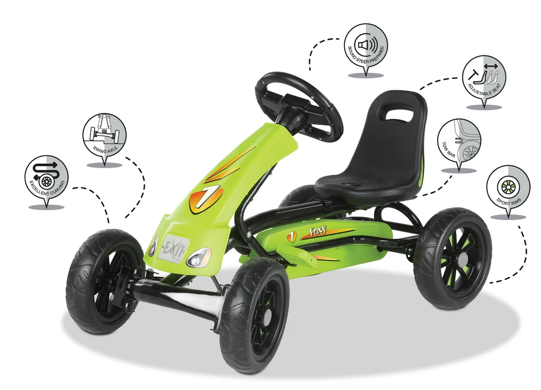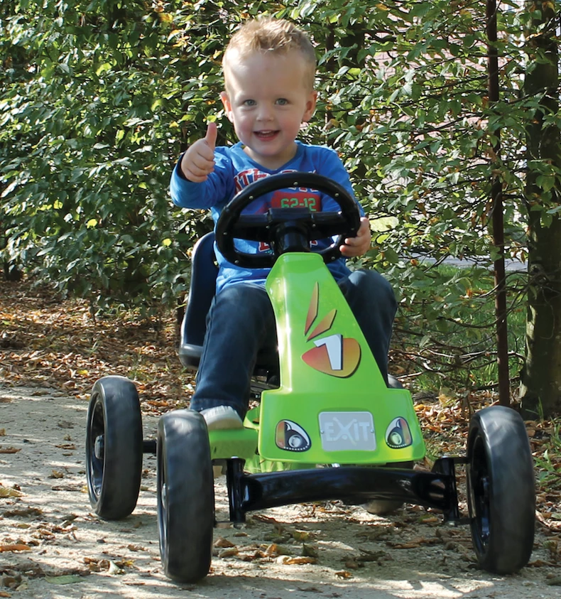 EXIT Toys also thinks about young racers. The EXIT Foxy Go Kart is suitable for children from the age of two! Even very young kids can safely use this sturdy go kart, tearing through bends and criss crossing streets.
