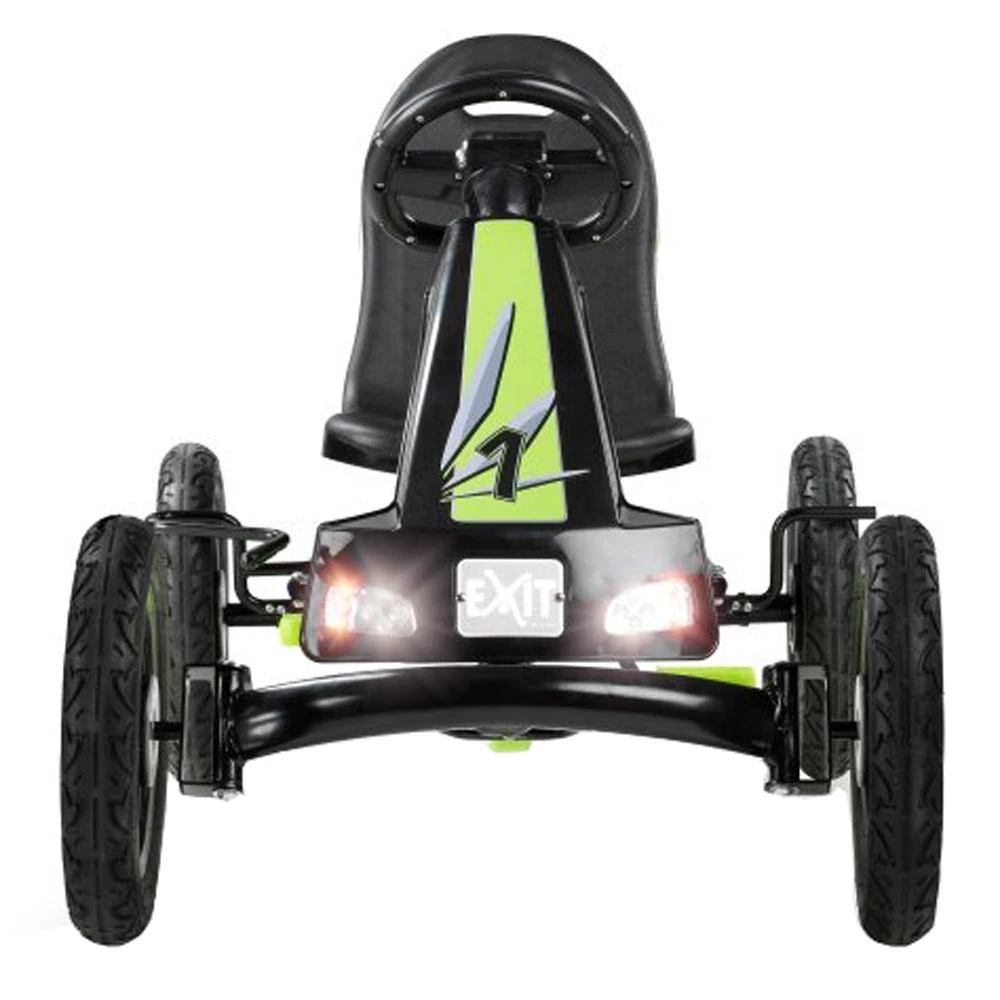The EXIT Spider Green pedal go-kart and trailer make it easy to take those sharp little bends and can go super fast. This pedal go-kart also has a hand brake and the sturdy, flexible axle will keep the front wheels of the pedal go-kart on the ground nice and safe, even on rough terrain.