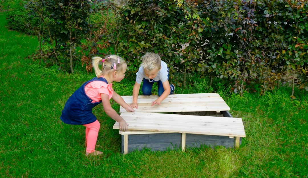 The Aksent sand pits from EXIT Toys are made of FSC® certified cedar wood (FSC 100%, FSC® SCS-COC-007799). This kind of wood is free of splinters and has a natural resistance against weather conditions like rain, which in turn also makes it resistant to rot. You don’t need to apply any kind of special treatment to the EXIT wooden sandpits before use, which means that children can safely play in them straight away.