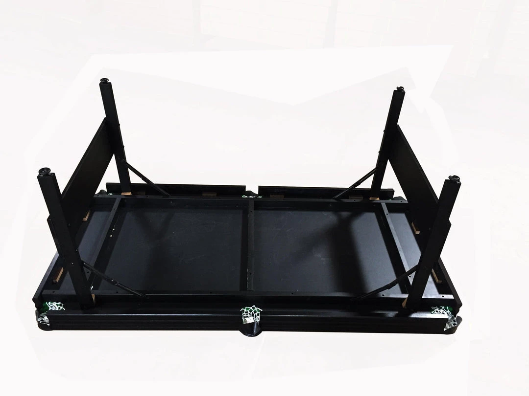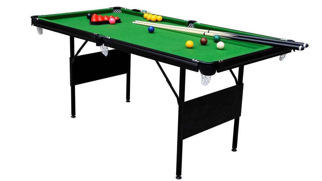 The Gamesson Crucible 6ft Snooker Table comes with a luscious, smooth green playing surface as well as slick black-painted steel legs that fold away which are useful for saving space when spare room is short.Β