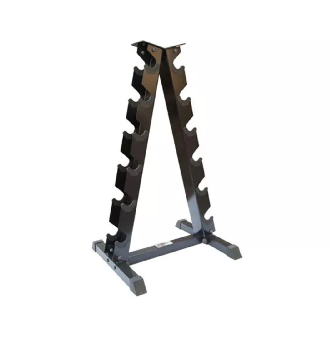 Keep your gym equipment tidy and organised with our A-Frame Hex Dumbbell Rack. This Dumbbell Rack holds up to 6 pairs of Rubber Hex Dumbbells, is made of heavy-duty steel for durability and has rubber feet to protect your floor surface. Our A-Frame Hex Dumbbell Rack fits up to 15kg Rubber Hex Dumbbells comfortably, perfect for our 2.5-15kg set.