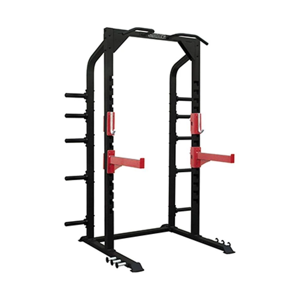 The Sterling Half Power Rack lets you train hard and stay safe. The sleek walk-through design integrated with chin up bars, and hooks to rack a barbell, allow for nearly limitless strength training possibilities. Power Racks are often used as a convenient workout station for virtually all compound exercises, including deadlifts, squats, bench presses, overhead presses or any other movement that you may require a spotter to perform. The Half Power Rack is ideal for performing the Olympic lifts and is thereby very popular within Cross Fit gyms. It is also a fantastic addition to any facility where space is limited.