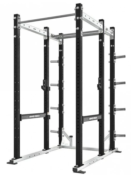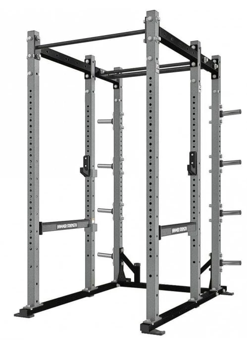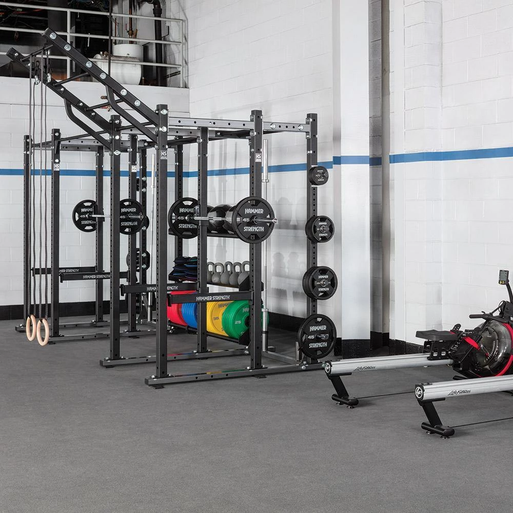Maximum versatility with minimum holes in the frame for a clean and attractive look. Four high-wear colours for uprights and cross member options, and standard Hammer Strength colour choices for the frames.