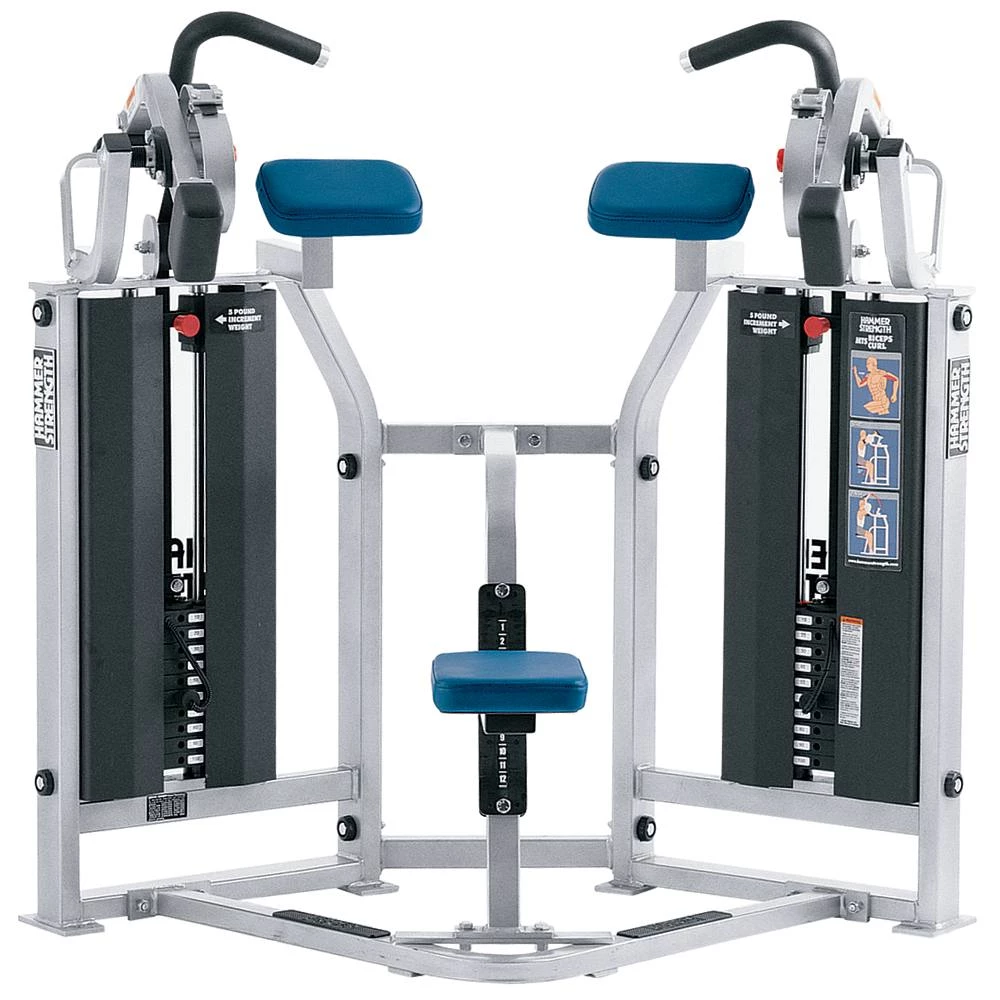 The MTS Iso-Lateral Biceps Curl features separate weight stacks that provide independent diverging and converging motions. Pad and seat adjustments provide neutral wrist positions and optimal body placement.
