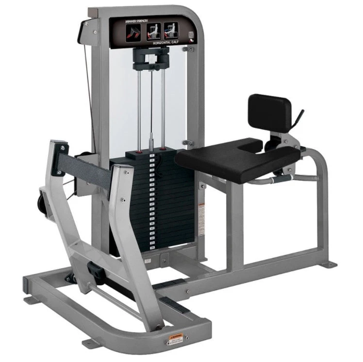 The Hammer Strength Select Horizontal Calf is a fundamental part of the strength training progression. Force is transmitted through the hips to eliminate spinal compression, and the back pad is adjustable to fit all exercisers. The 22 pieces in the Hammer Strength Select line provide an inviting introduction to Hammer Strength equipment.