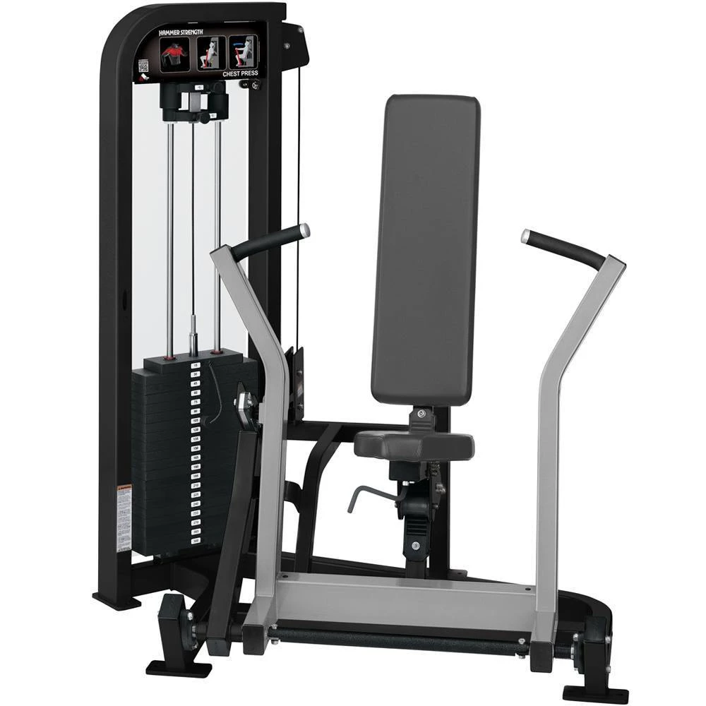 The Hammer Strength Select Chest Press is a fundamental part of the strength training progression. The pressing arm adjusts in five positions for multiple ranges of motion. The 22 pieces in the Hammer Strength Select line provide an inviting introduction to Hammer Strength equipment.