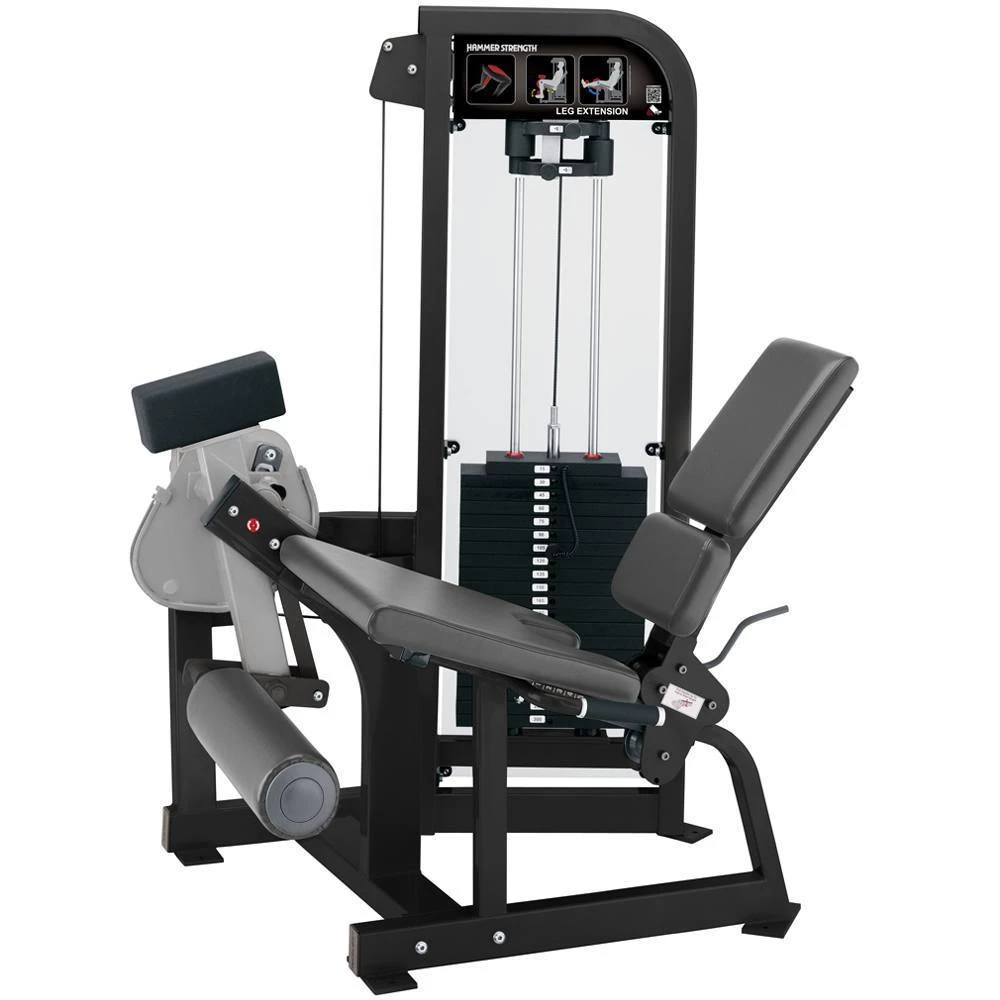 The Hammer Strength Select Leg Extension is a fundamental part of the strength training progression. All adjustments are accessible from the seated position, and the adjustable start position provides five different starting points. The 22 pieces in the Hammer Strength Select line provide an inviting introduction to Hammer Strength equipment.