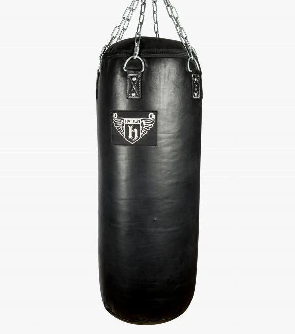 Build punching power with a Hatton Heavy Duty Punch Bag. Made from 100% dyed quality leather and filled with a unique type of bag fill exclusive to Hatton Boxing, the Heavy Bags are hand stitched for superior quality and lasting durability. Each bag comes complete with a six hook chain to ensure maximum safety and support.