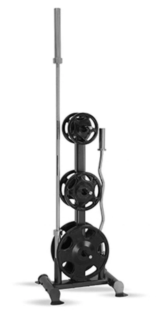 Designed to hold Standard, Olympic or Bumper plates. Plus two full-sized Olympic bars.
