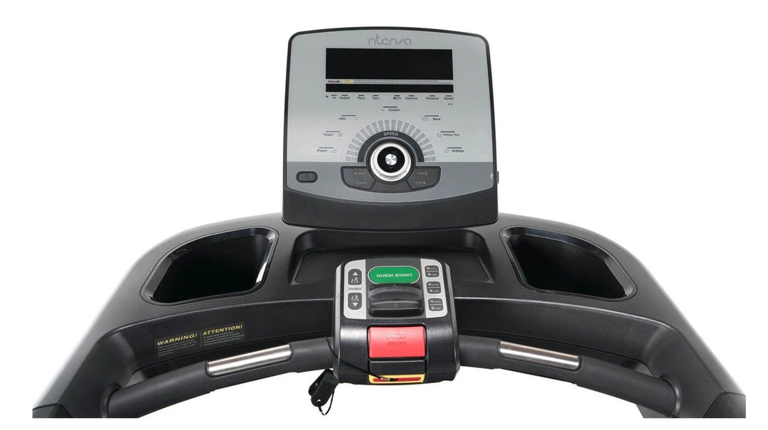 - After 60 seconds of detecting no strides, Intenza treadmill belts instinctively stop; this is a safety measure for the user. As an added energy saving measure for the facility, the console goes into power saving mode reducing energy consumption to 0.4 watts