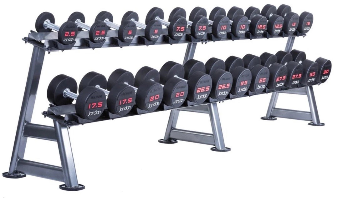 - Designed to hold 12 pairs of dumbbells