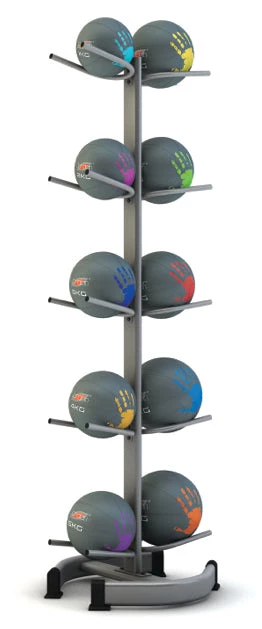 - Affordable rack that stores up to 20 medicine balls or slam balls.