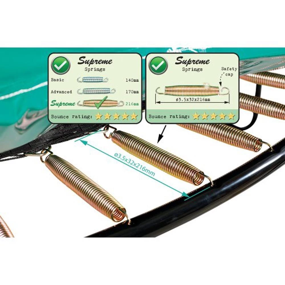 The EXIT Supreme trampoline is a rectangular trampoline of absolute top quality with green padding.