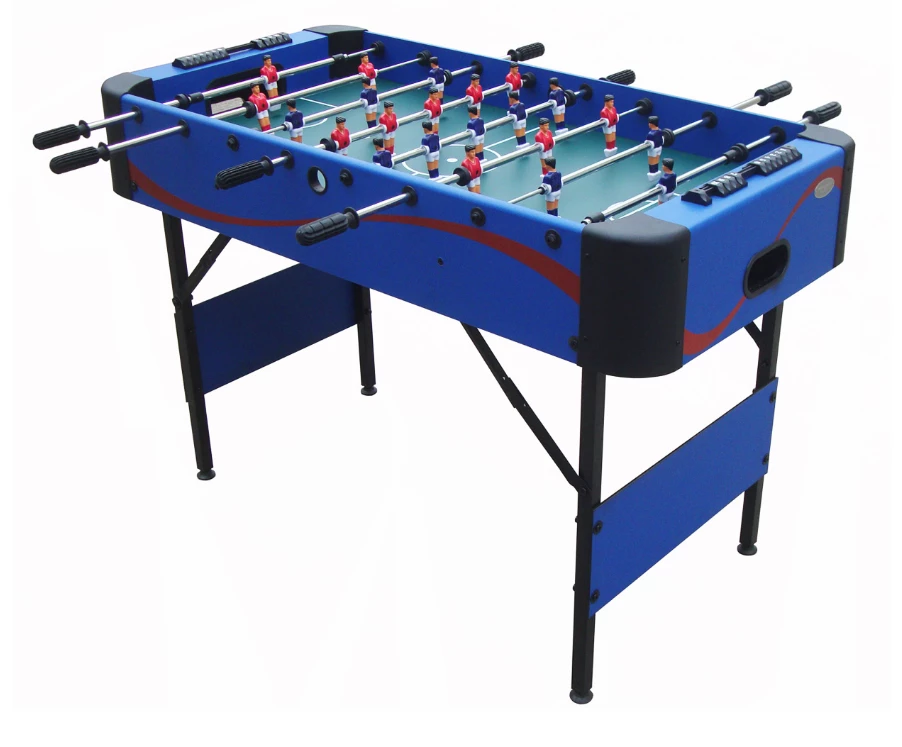 The Roma II is made with a striking blue surround and red stripe, and comes with two balls. With 11 players per side, it offers authentic table football on a 4 foot long pitch. Its rugged looks will appeal to any young’un, and its raised corners prevent those unfortunate strops when the ball keeps going out of play. Scores are recorded using the classic scoring tokens at each end.