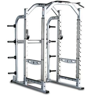 - Standard equipment: 8 point side weight storage. 1200mm wide multi grip (25mm) pull-up bar. quick release single bar holders adjustable every 120mm. interior safety spot arms. and a 580mm deep spotters area. dual vertical bar storage socket.