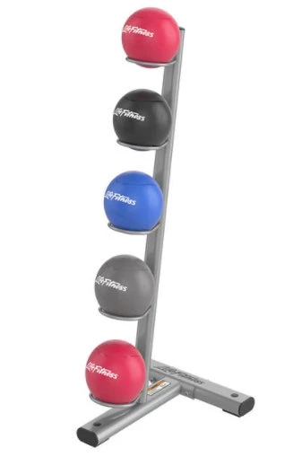 The Axiom Series Vertical Medicine Ball Storage Rack has the ability to hold up to 5 medicine balls (10.5β in diameter).