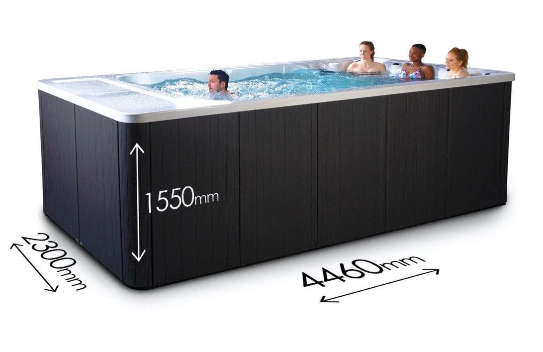 It holds 6500 litres of water, and has a dry weight of 1200kg, so the base that the Swim Spa sits on must be strong and level.