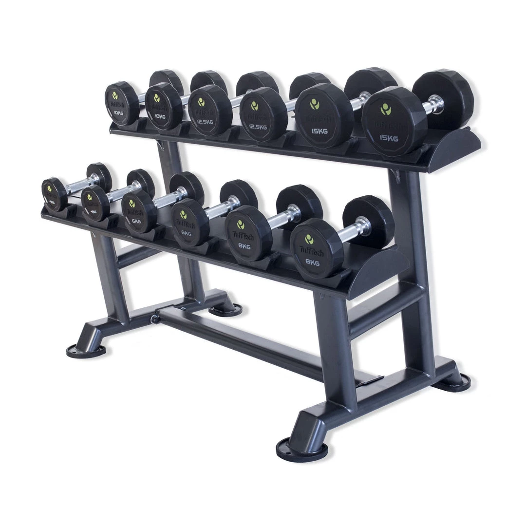 One of the most popular racks to have on the gym floor. This heavy-duty 6 pair horizontal dumbbell rack, incorporates our unique oval tube design with 3mm thick steel.