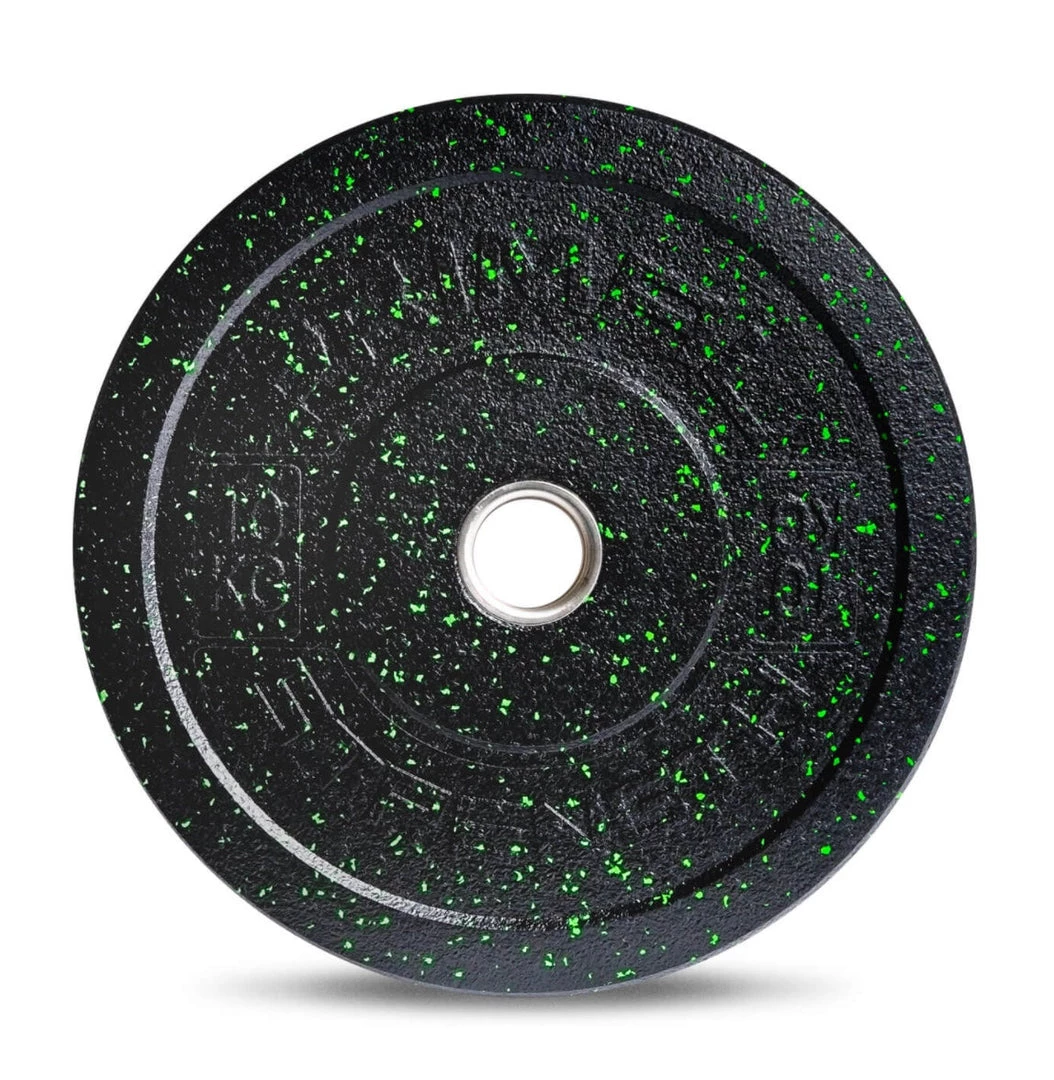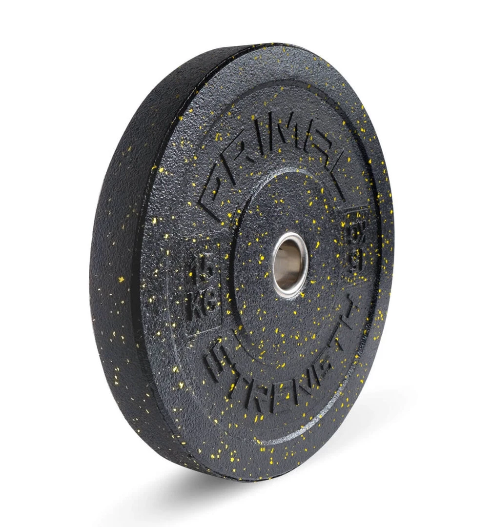 The Primal Strength Hi-Temp Grain Bumper Plates are our most popular bumper plates for CrossFit boxes. The grain bumpers have Olympic colour coded flecks and look superb in any gym. The bumpers are 450mm diameter and they are tolerance tested to under 2% of displayed weight. The lower durometer achieved from using grain rubber allows the bumper to have a higher bounce and the plates to be repeatedly dropped from overhead, whilst protecting the Olympic bar and flooring.