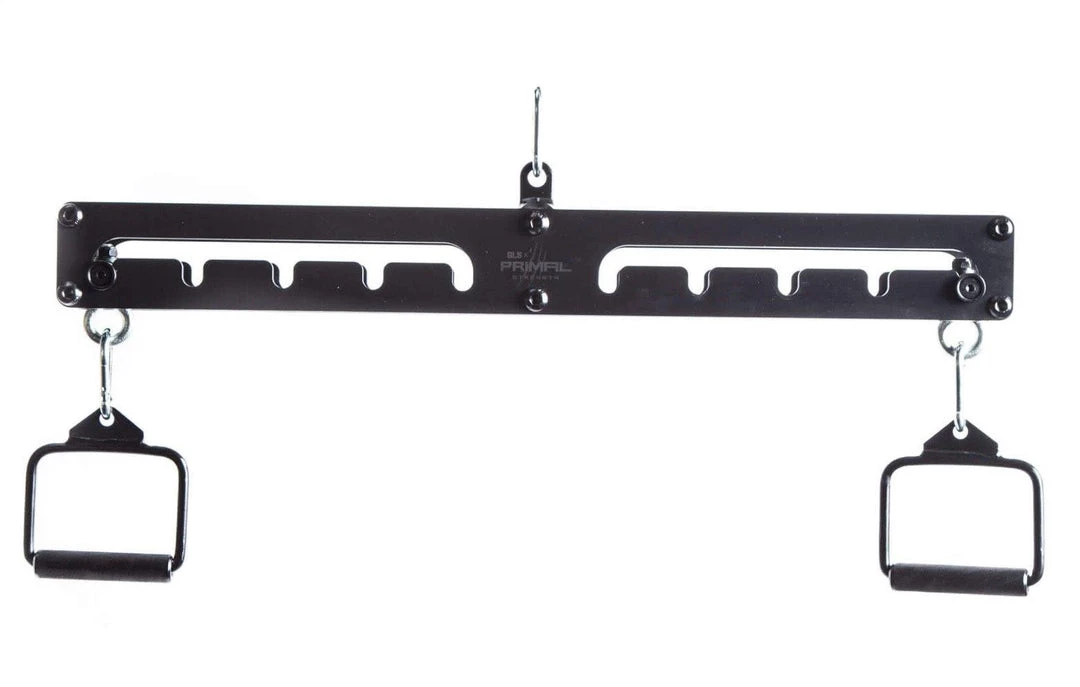 The GLS by Primal Strength Crane Bar lets you quickly change between 5 grip width options, all using a supinated grip, pronated grip, neutral grip or anything in between, on both pulldown and cable row exercises.