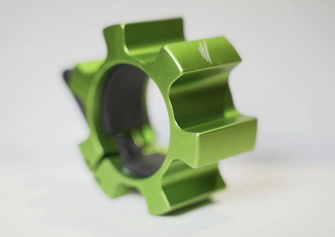 They Lock quickly to any standard Olympic bar, we offer four anodized colour finishes: Blue, Red, Black and green.