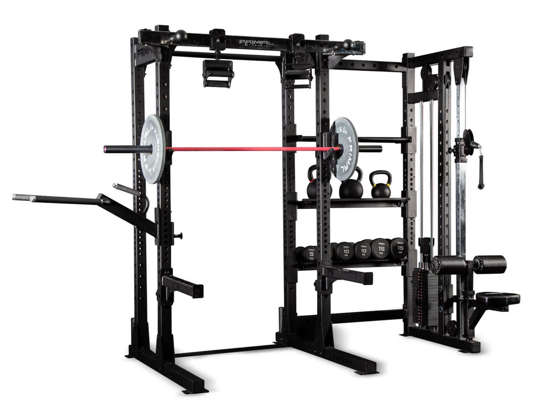 The Primal Strength Personal Training System is the complete solution for any personal training spaces. Featuring our best-selling V3 Half Rack, 1m Central Storage and Integrated 90kg Pulley system. The system allows you to save space, rack and pull up to 450kg or program a small PT session using the Rack, Pulley and Central Storage.