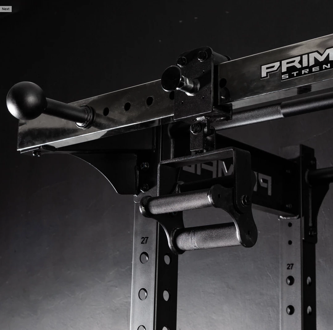 - Integrated adjustable swivel chin/pull up handles and knurled straight bar