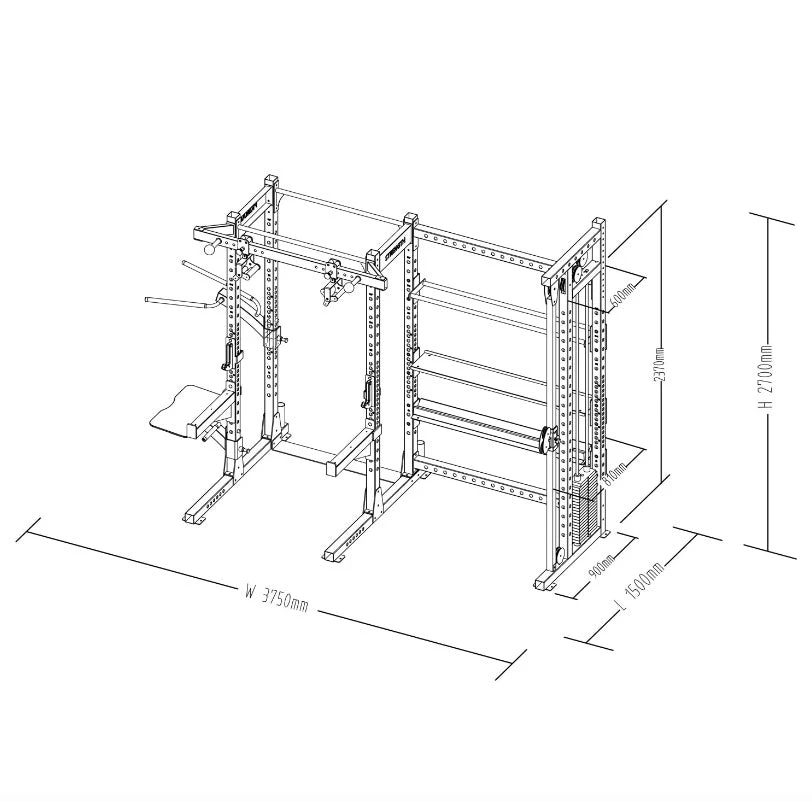- 1m Central storage to hold dumbbells, kettlebells, and slam balls