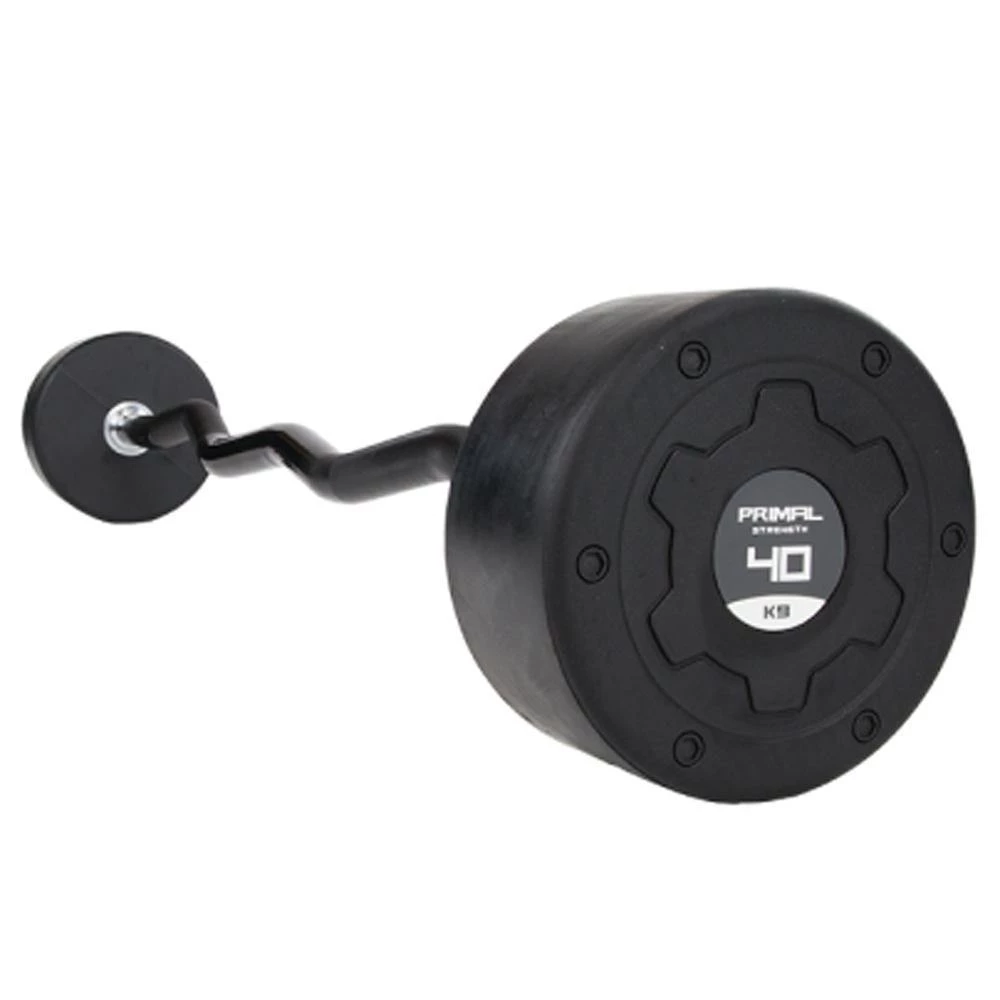 The barbells are weight-tolerance tested to within 2% to ensure accurate barbell weight. The end-caps have a subtle grey, Primal Strength logo with oversized KG numbers. The larger numbers are great to identify barbells in busy commercial gyms.