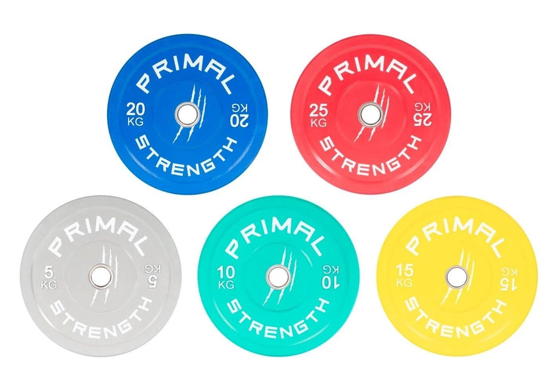 The Rebel Commercial Fitness Colour Bumper Plates are our bestselling Olympic disc and exhibit the Primal Strength Logo and ‘Slashes’ running through the centre of the discs. The bumpers are aesthetically superb and will add to the look of any premium gym or sports facility. They have IWF 450mm diameters as standard and are tolerance tested to under 2% of the displayed weight.