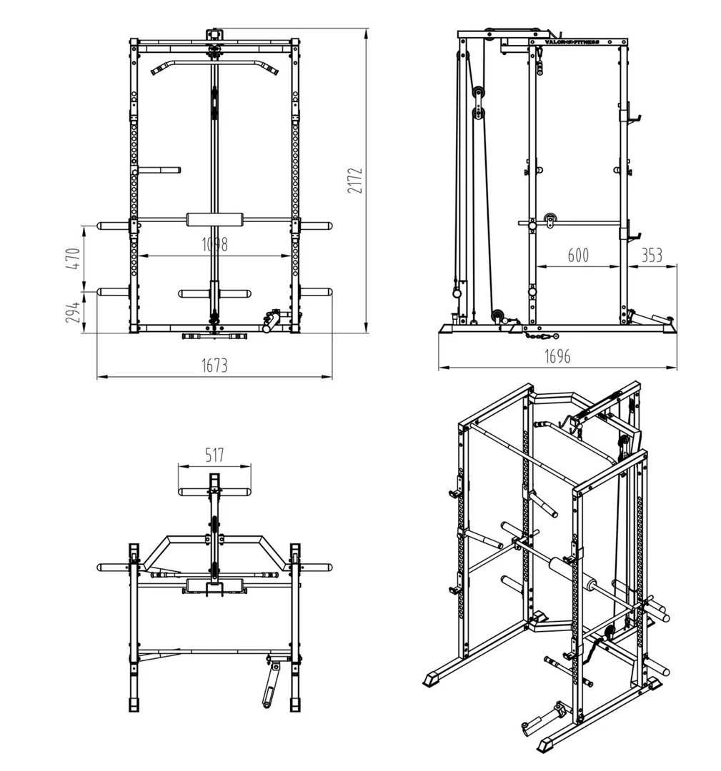 - Includes: Lat Pulldown and Low Row positions, Dip Handle, Landmine attachment, J-Hooks and Olympic Plate Storage pins
