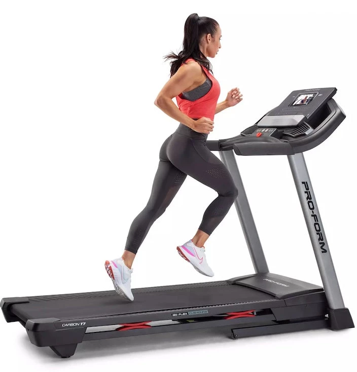 The ProForm Carbon T7i Treadmill will help you take your training to the next level. Packed full of features such as 7” Full Color Touchscreen Display, ISO flex cushioning and BLE compatible heart rate monitor, the T7i gives you an engaging yet comfortable home workout, every time.