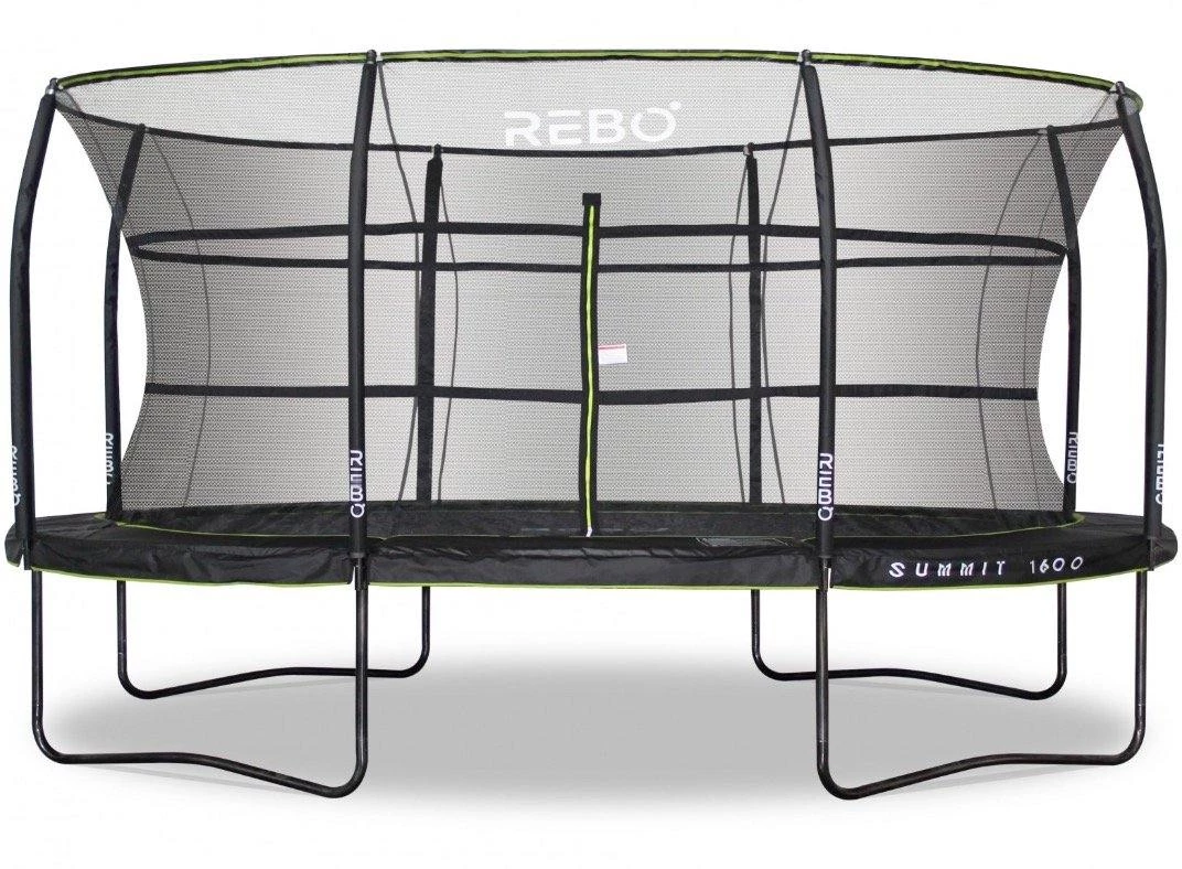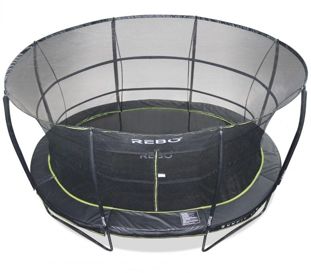 Taking their trampoline development to new heights Rebo have designed these new ranges for performance, the SummitβsΒ durableΒ galvanised steel frame has been designed for strength and stability with a powder coated top layer for added weather protection. Safety is also a top priority as is evident with the thick spring cover padding and the high-grade enclosure net that has twin reinforcing bands around its circumference and a reinforced enclosure entry zip to name just a fraction of the high-end elements this trampoline comes with as standard.