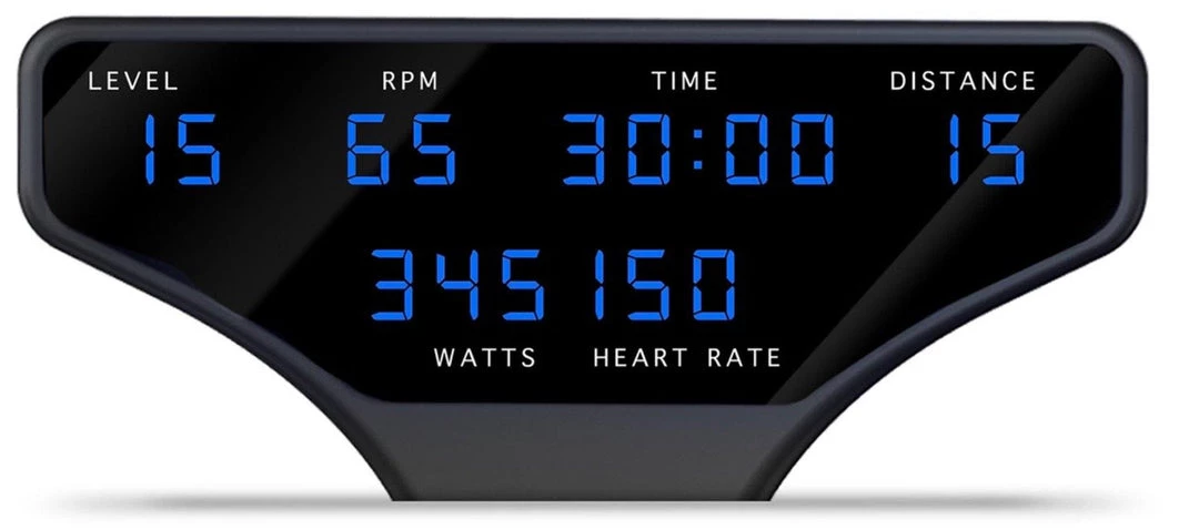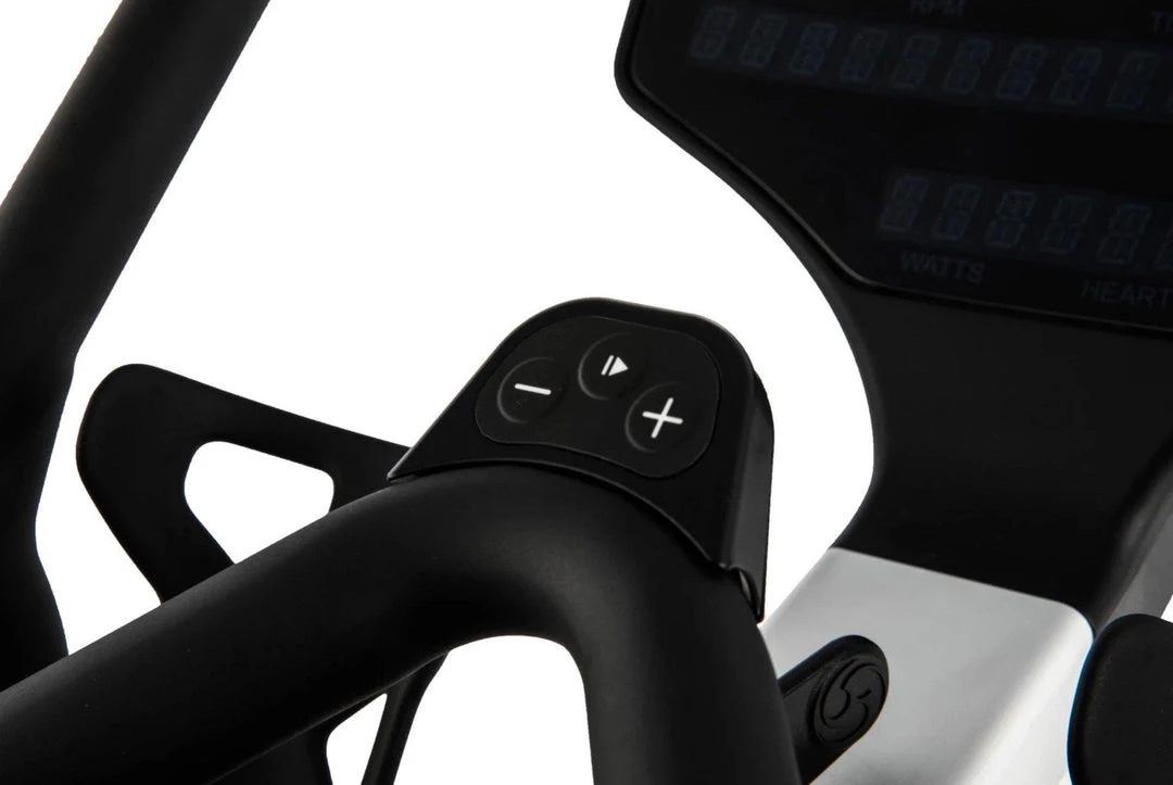 A generator drive system with power save function allows users to store workout data for 10 minutes after pedaling has stopped. Proprietary handlebar design for comfort and resistance buttons at your fingertips regardless of ride position. Built in programs give users an effective workout each time and include Warm up mode, Manual, HR Zone program, Power Zone program and LAP program.