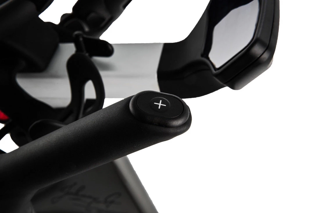 Proprietary handlebar design for comfort and resistance buttons at your fingertips regardless of ride position.